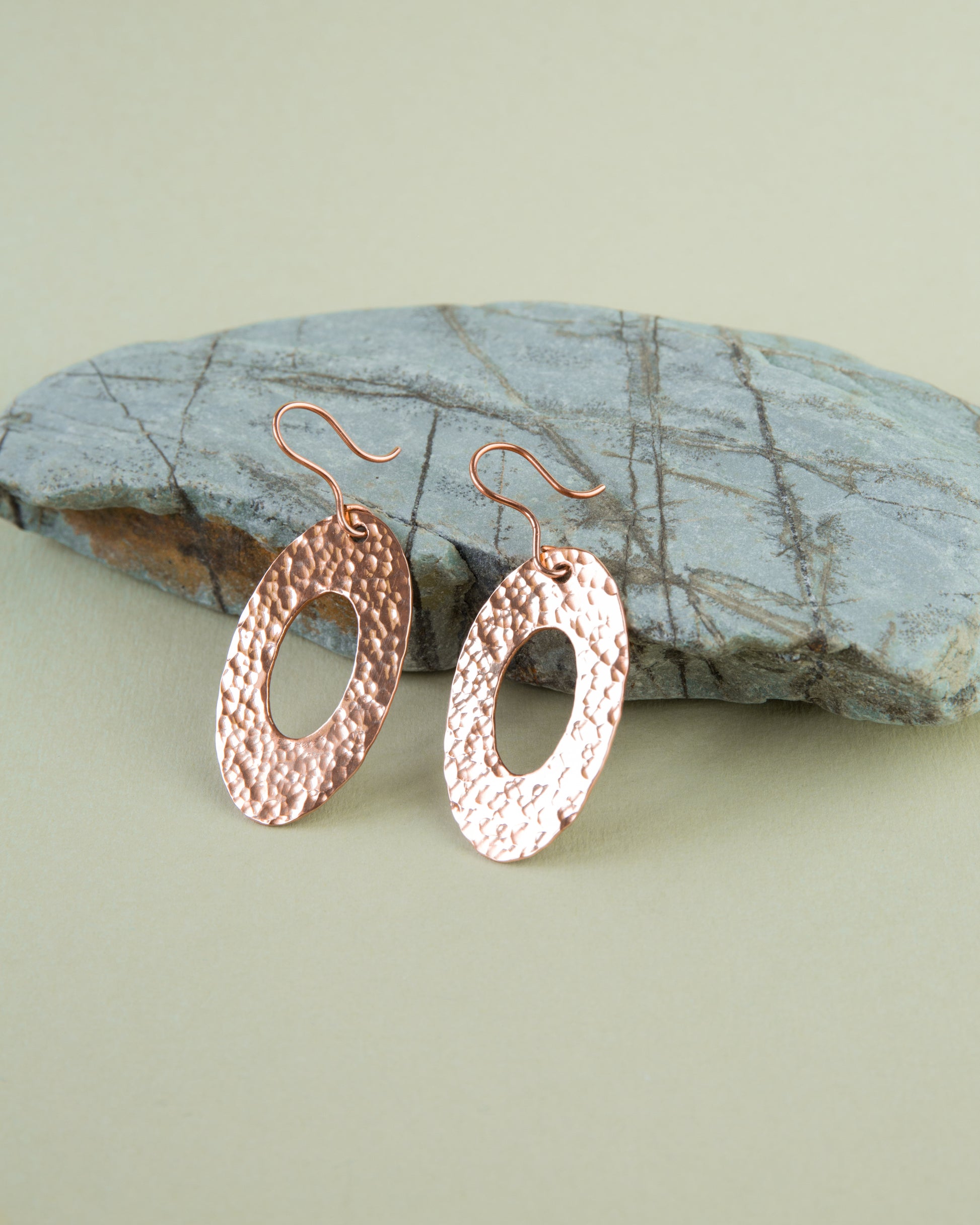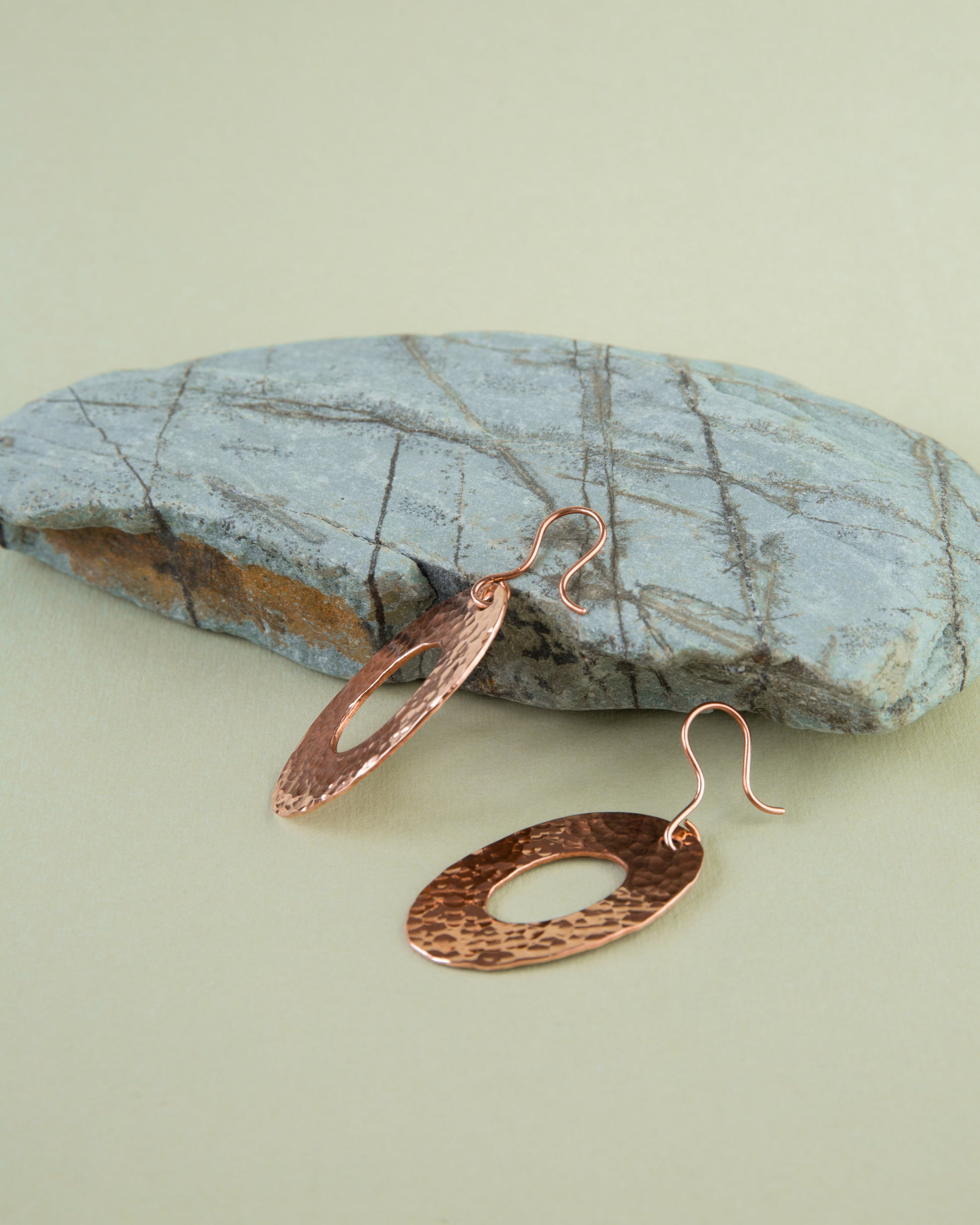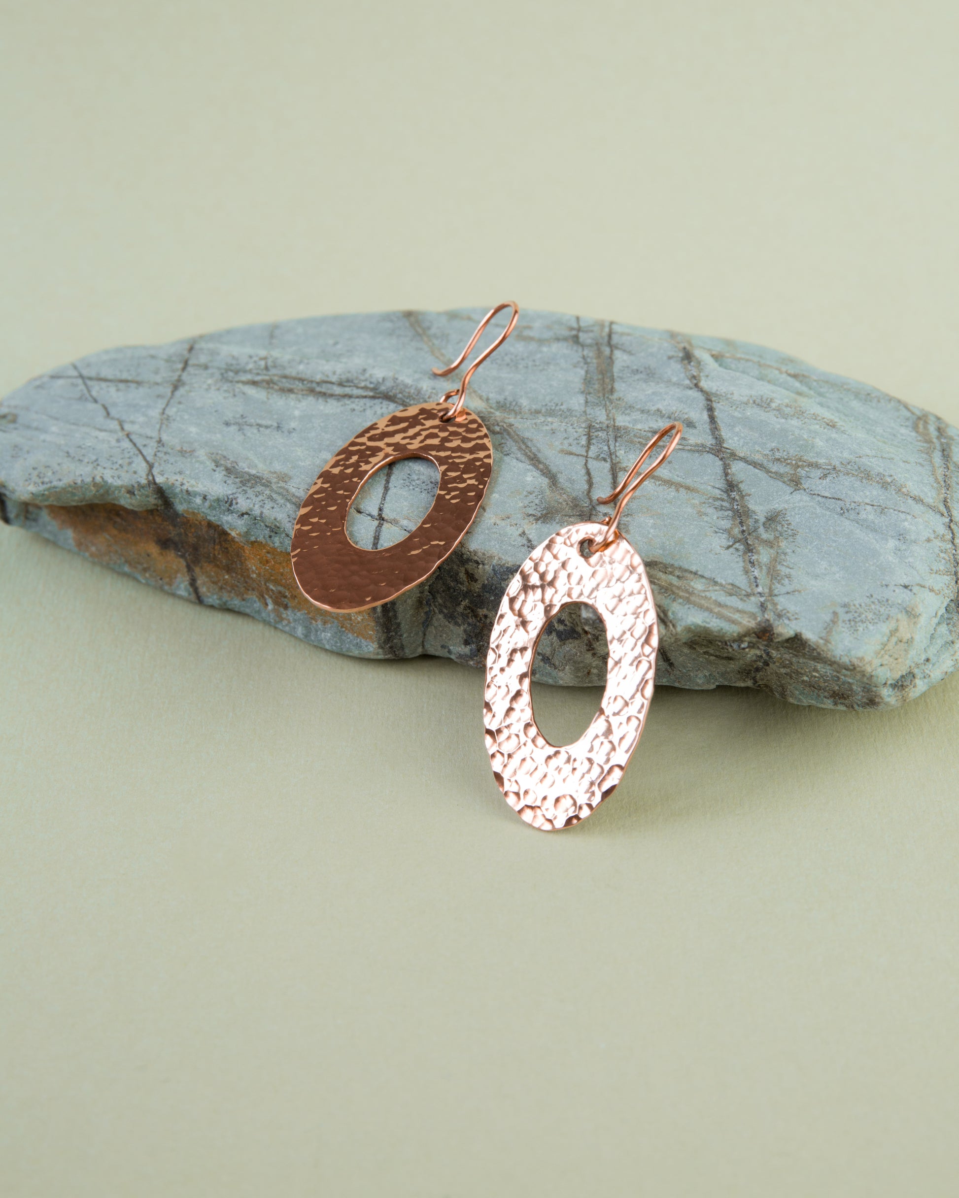 Kolczyki miedziane elipsy, młotkowane, na biglu, w całości wykonane z polskiej miedzi KGHM przez Pracownię Wyrobów z Miedzi W. Kosz. Minimalistyczne, unikatowe, tworzone ręcznie, z pasją i zaangażowaniem.