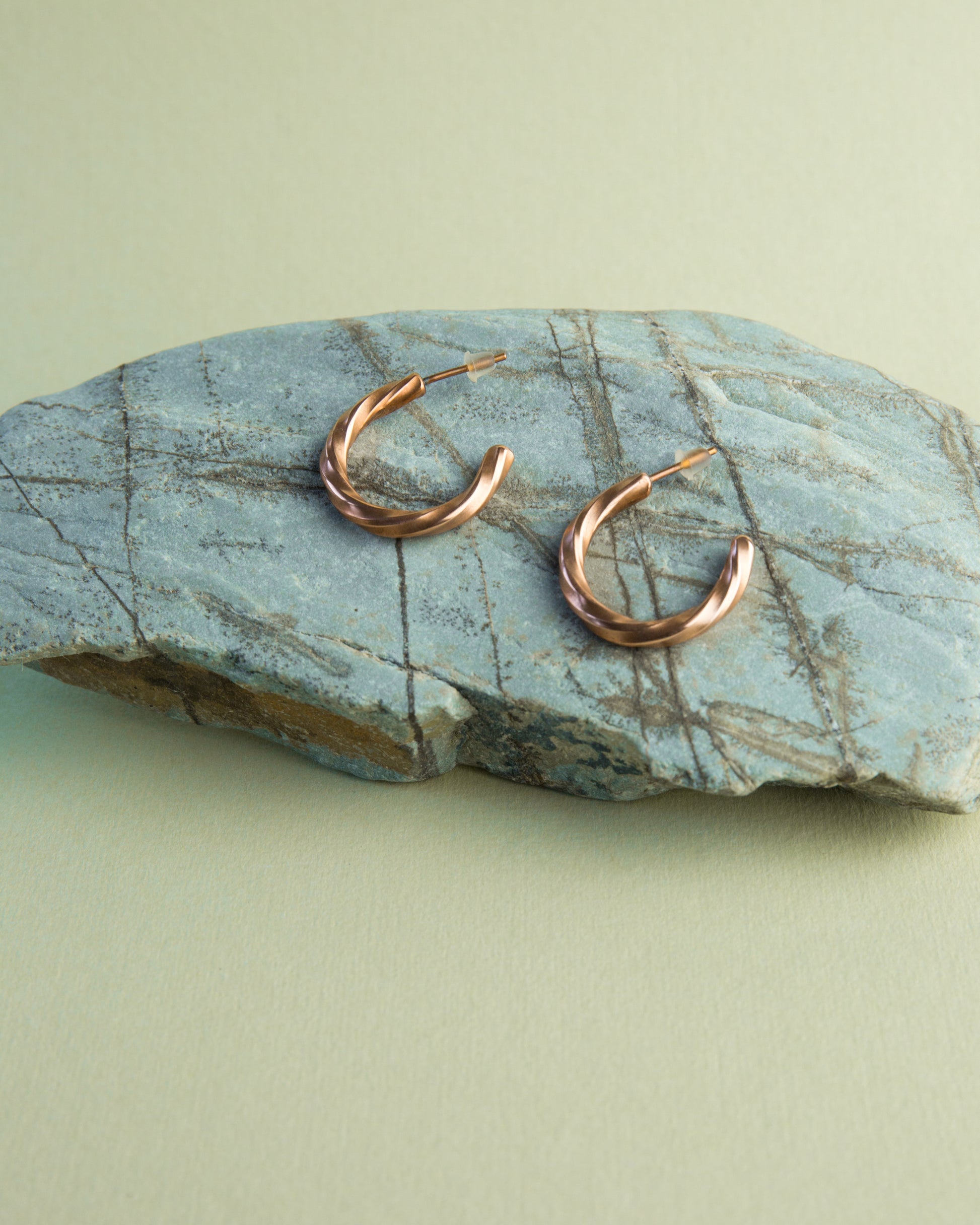Kolczyki miedziane kółka, skręcane, na sztyfcie, w całości wykonane z polskiej miedzi KGHM przez Pracownię Wyrobów z Miedzi W. Kosz. Minimalistyczne, unikatowe, tworzone ręcznie, z pasją i zaangażowaniem.